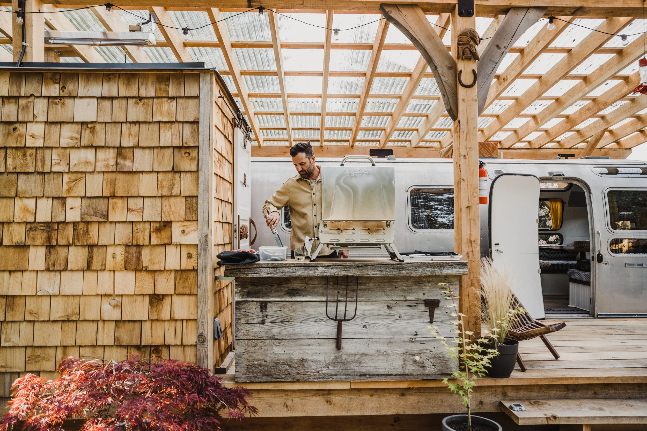 BBQ Bar. Reclaimed wood.. Mike is your host and he put this all together for your glamping experience. '
